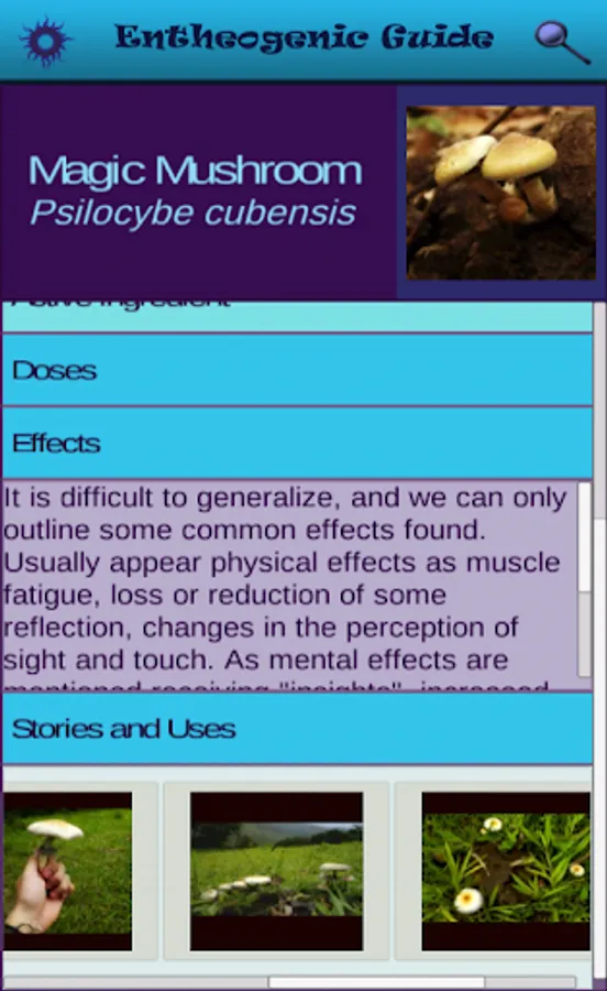 In this free app you can find the main plants and fungi containing psychoactive. With information and photos on hand, you can begin to unravel the mysterious world of entheogens.