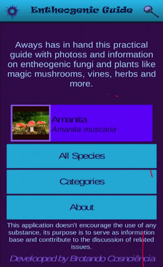 This application does not encourage the use of any hallucinogenic substance, your goal is to contribute as a source of information for the dissemination of knowledge and discussion of related issues.