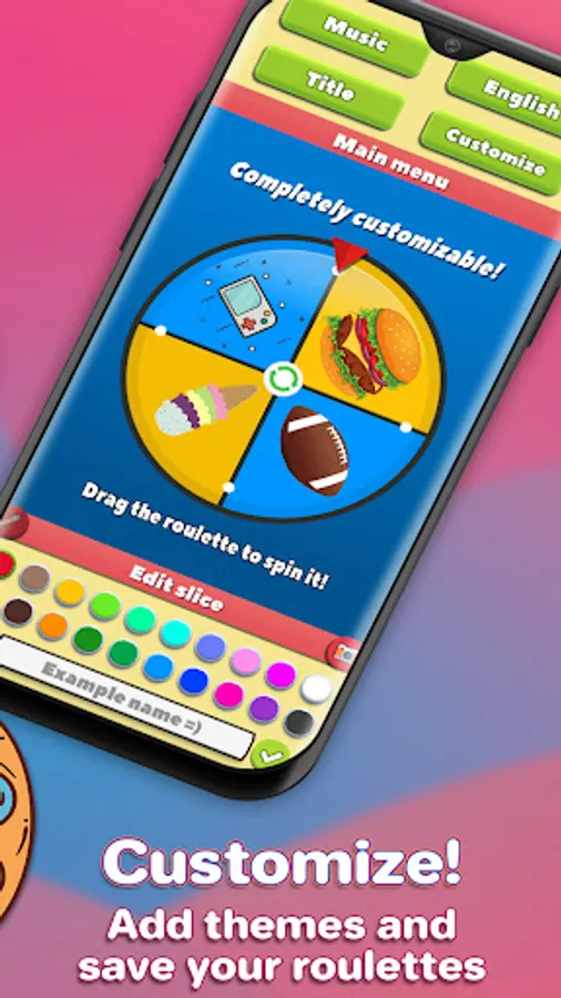 You can change the amount of slices, choose their colors and names, add different themes, change the speed, save your favorite roulette wheels and much more. It's super fun!