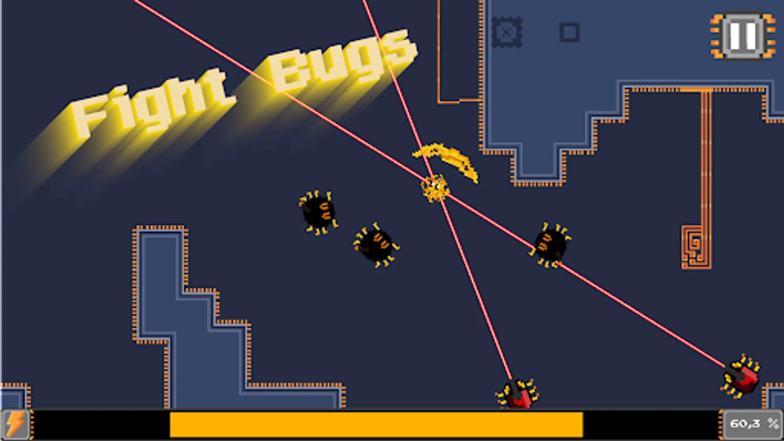 Bugs have taken over and are feasting on the energy of your computer. You - the friendly Energy ball, want to get that power back. In order to save all the energy, you start a BUXICUTION to execute them all.