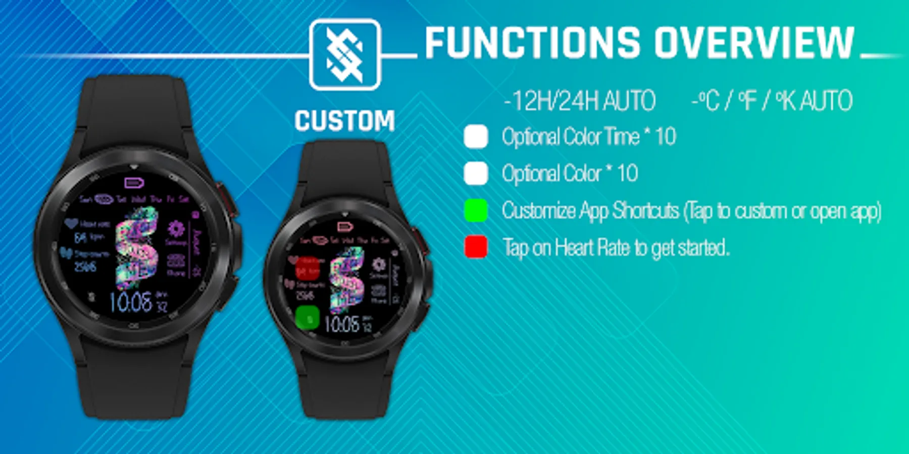 NOTE : Some features may not be available on some watches. This watch face will not apply to square face watches.