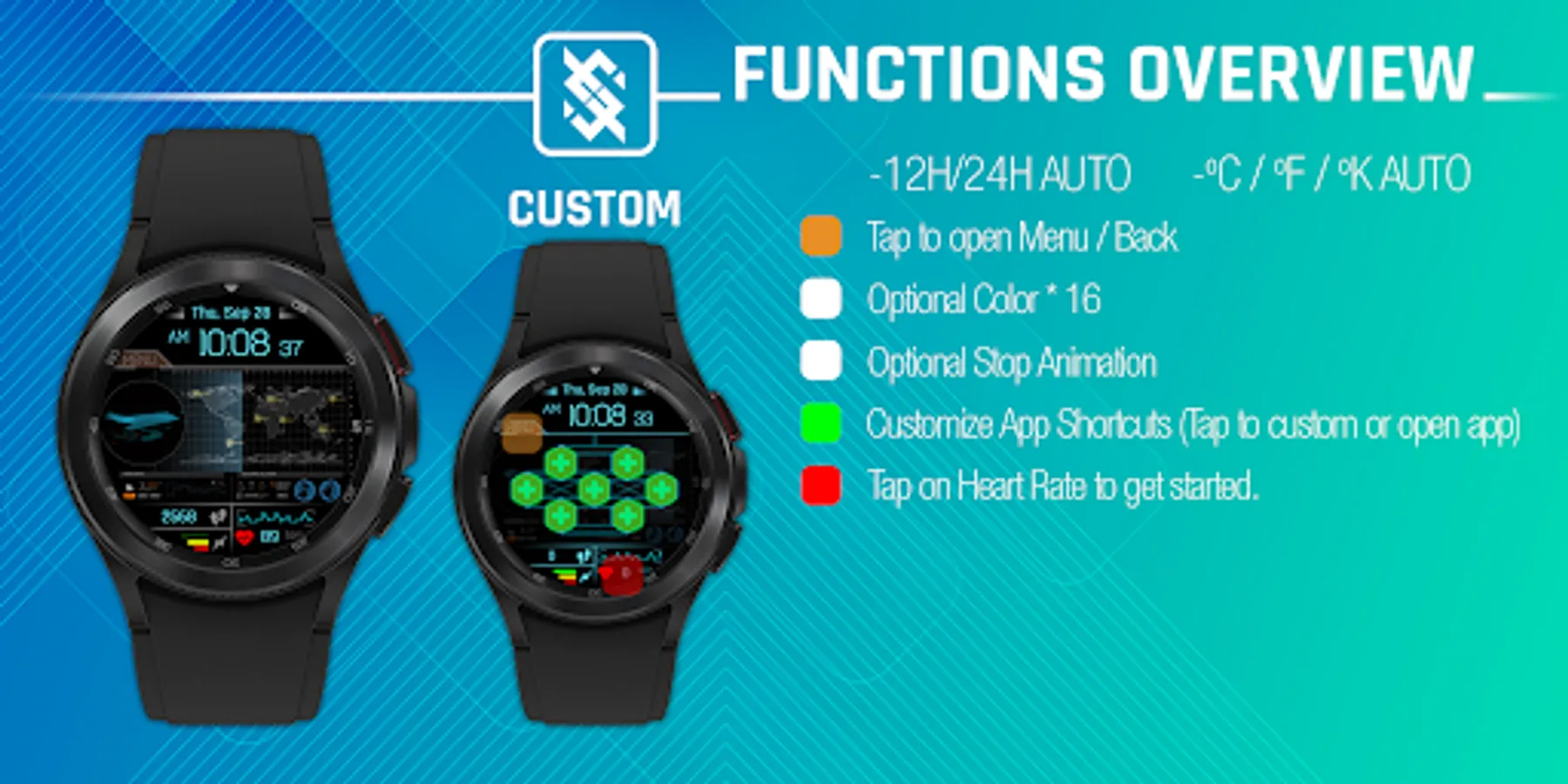 NOTE : Some features may not be available on some watches. This watch face will not apply to square face watches.