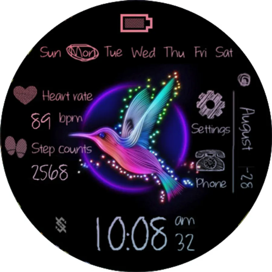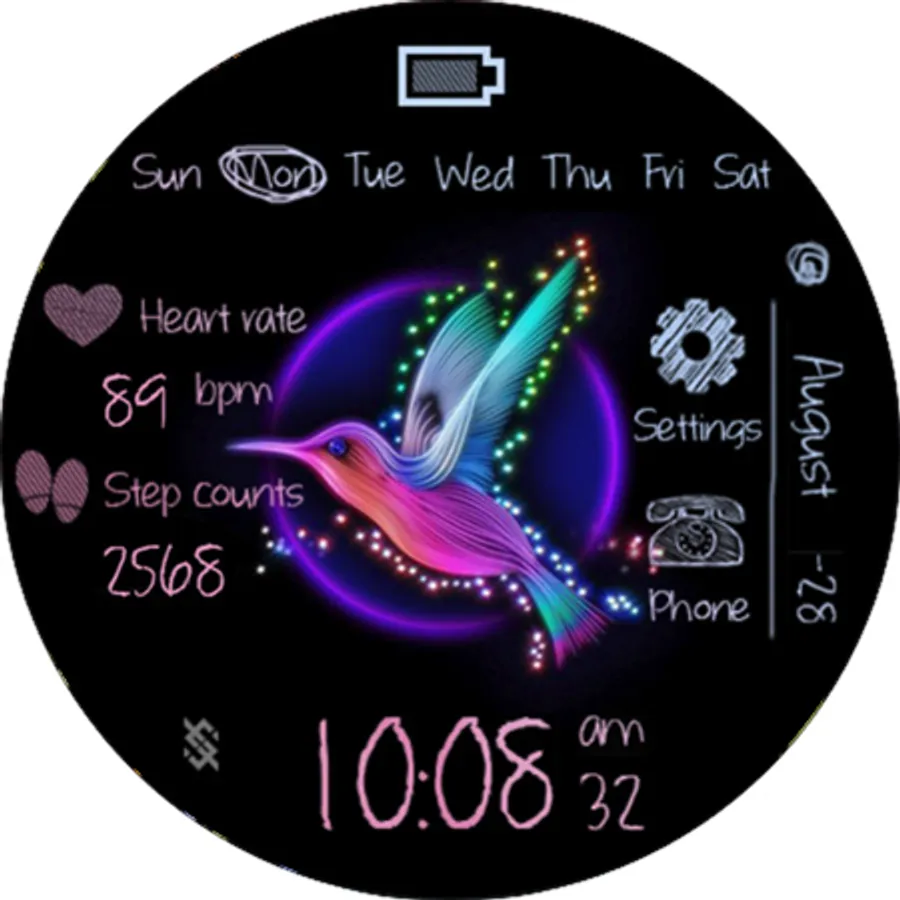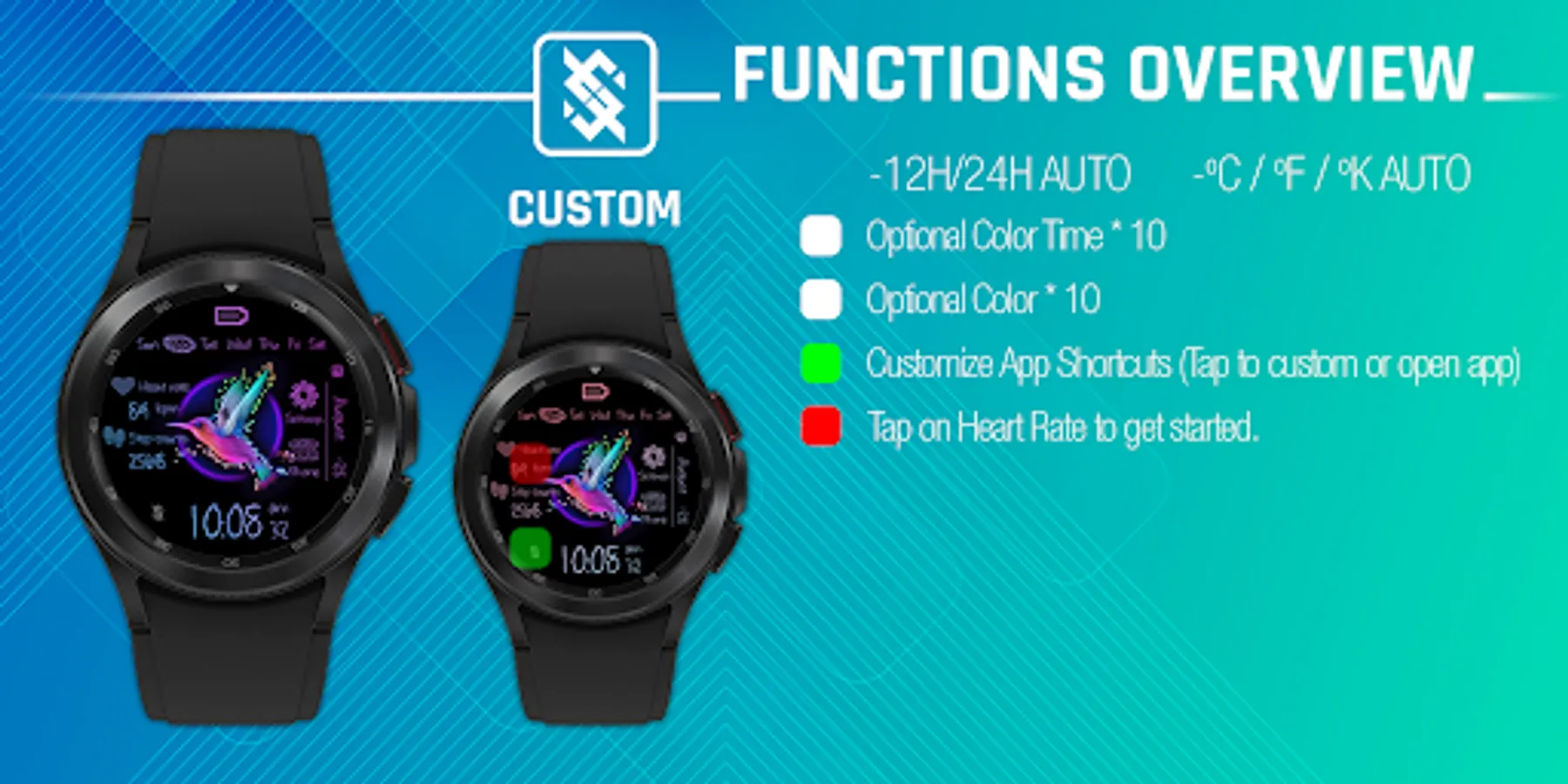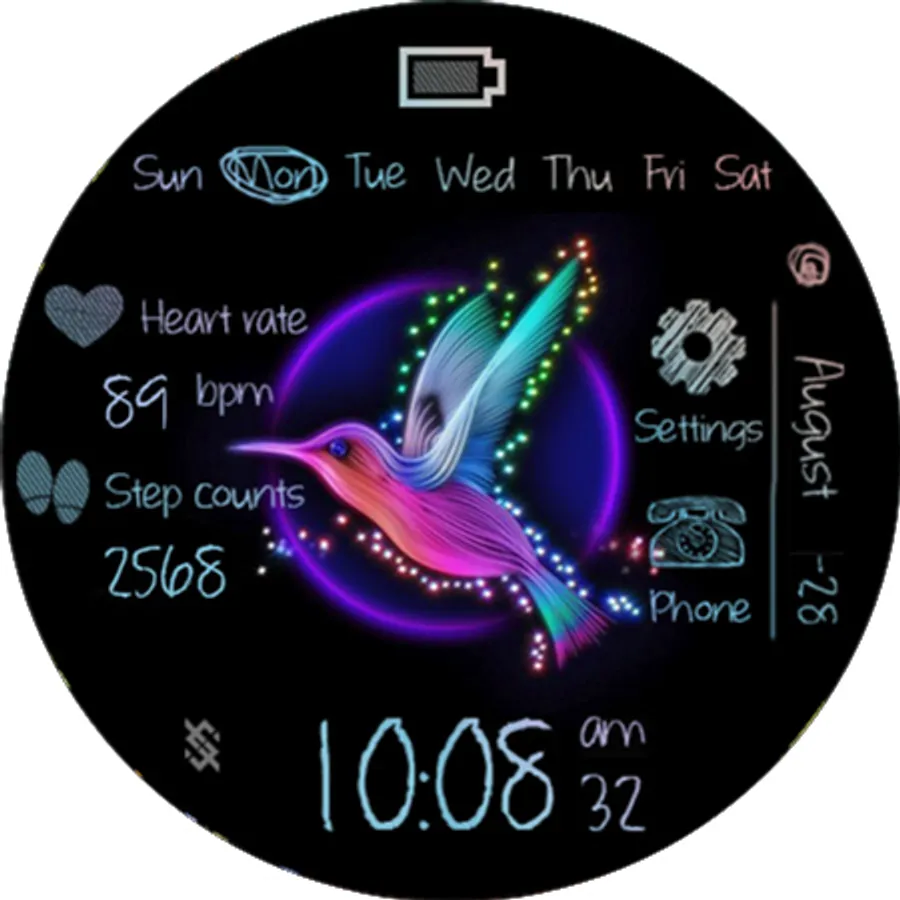 NOTE : Some features may not be available on some watches. This watch face will not apply to square face watches.