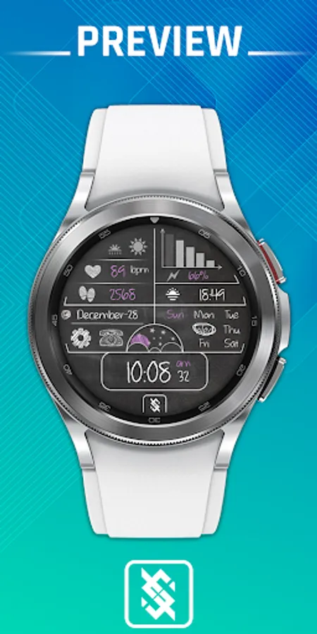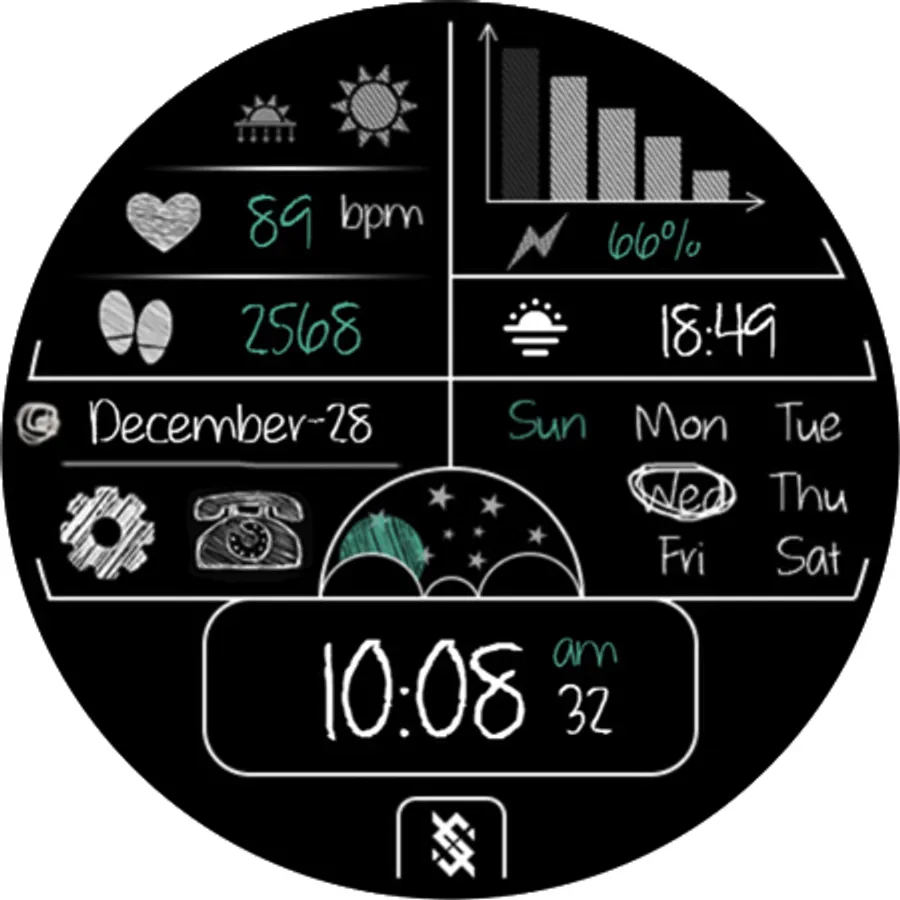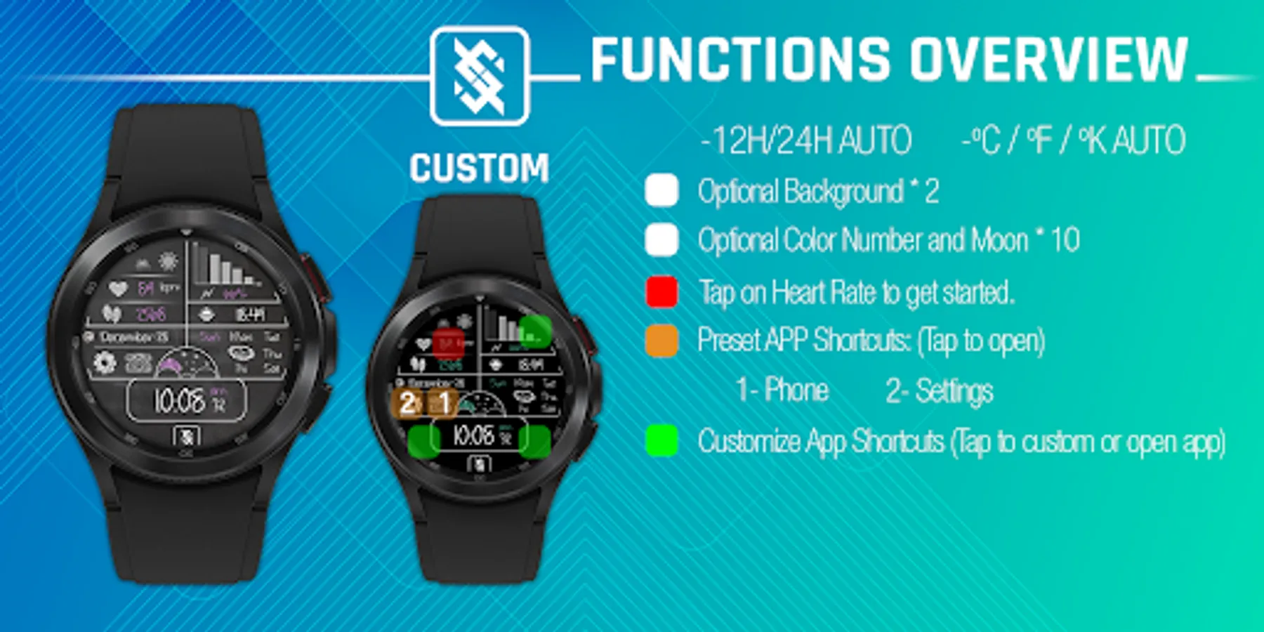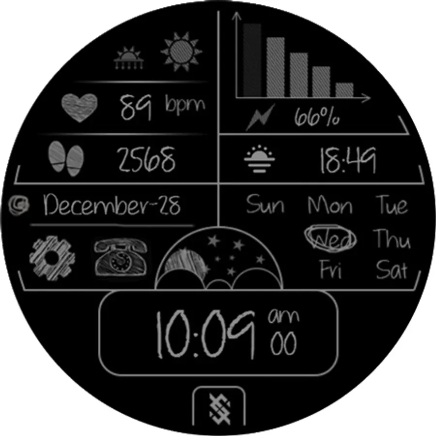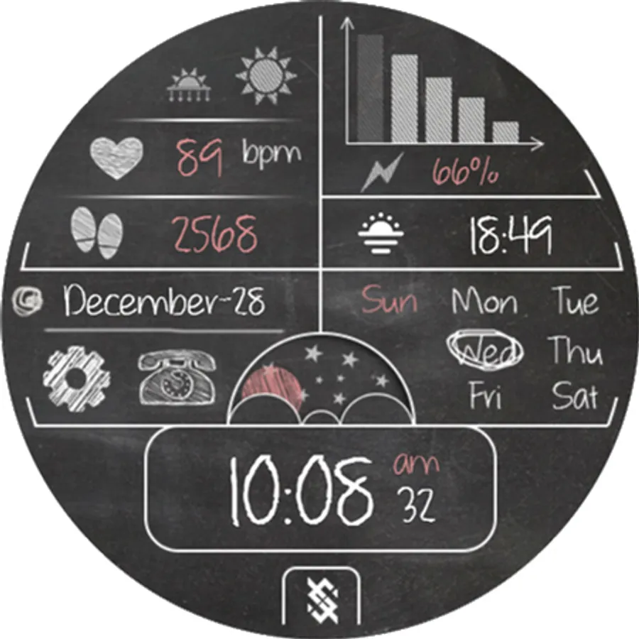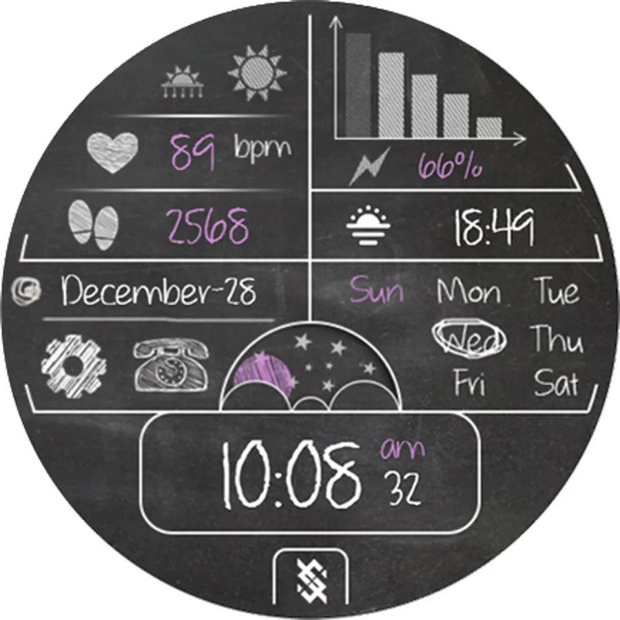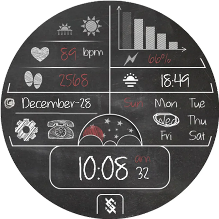 NOTE : Some features may not be available on some watches. This watch face will not apply to square face watches.