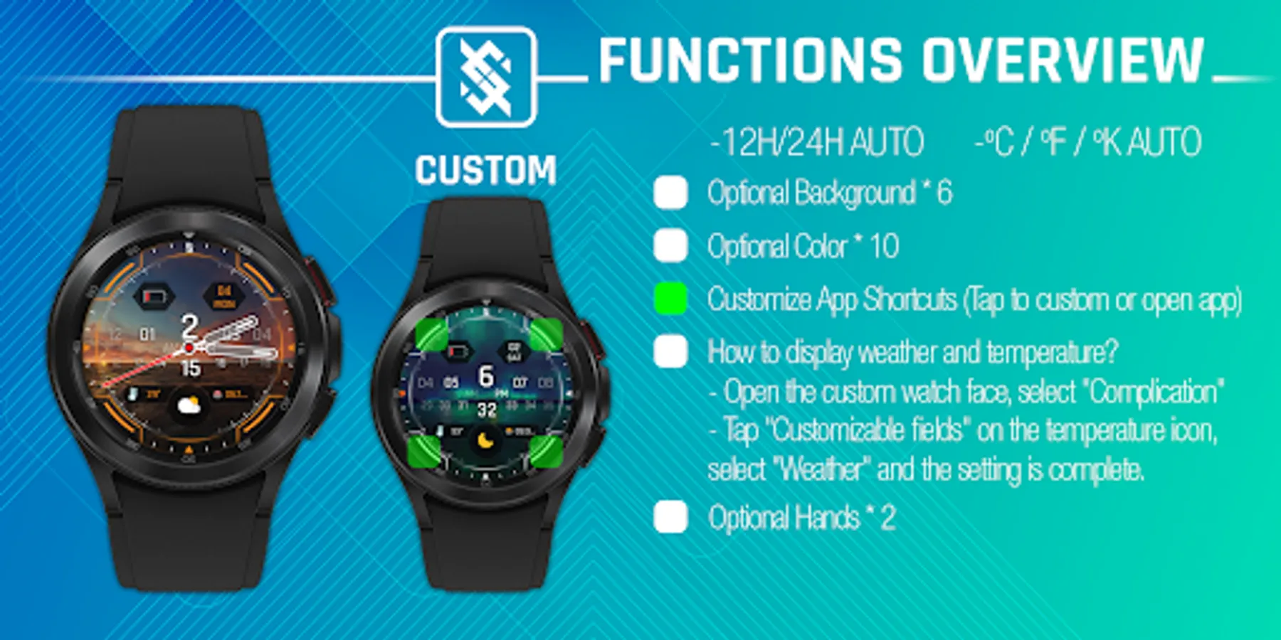 NOTE : Some features may not be available on some watches. This watch face will not apply to square face watches.