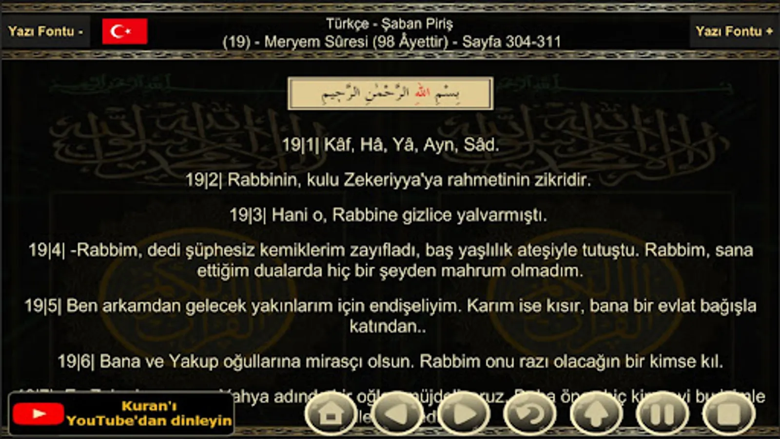 Arabic Text and Turkish Meaning Application of the Holy Qur'an (Şaban PİRİŞ)