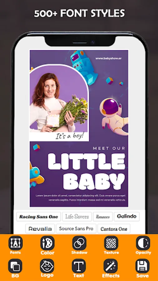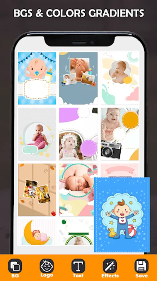 The girls are cute, soft, and very cute. To create beautiful designs that convey everything that a cute baby is, this app offers you photographs and graphics, and stickers. In addition, you can upload your own images, to customize the designs to the maximum. Surprise the future mother by creating professional designs, so that she knows how important it is to you.