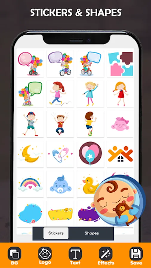 1. Use your own images or choose our stickers of babies, animals, elephants, among others.
