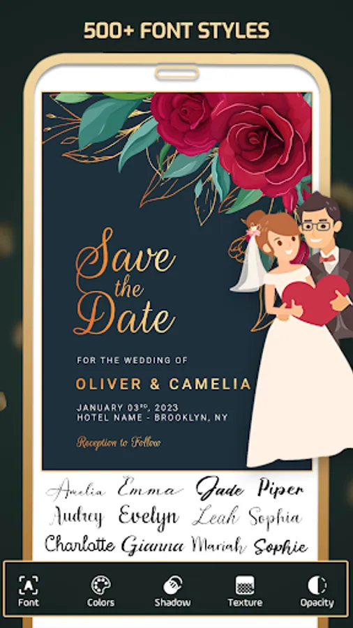 # Can add wedding cards from a variety of options like text, color, fontstyle and shaders.