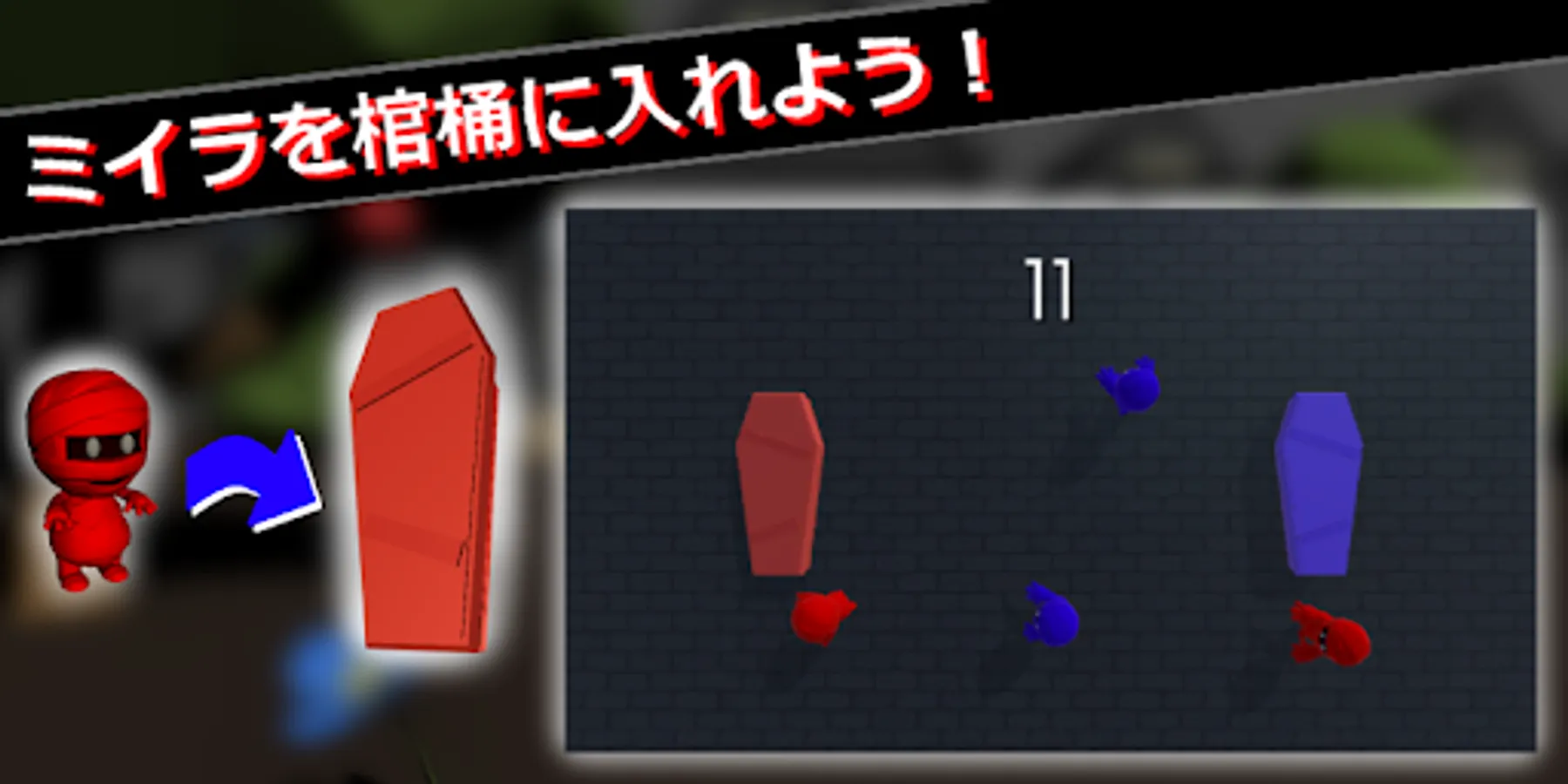 Put randomly appearing mummies in a coffin of the same color as the mummies and earn a score!