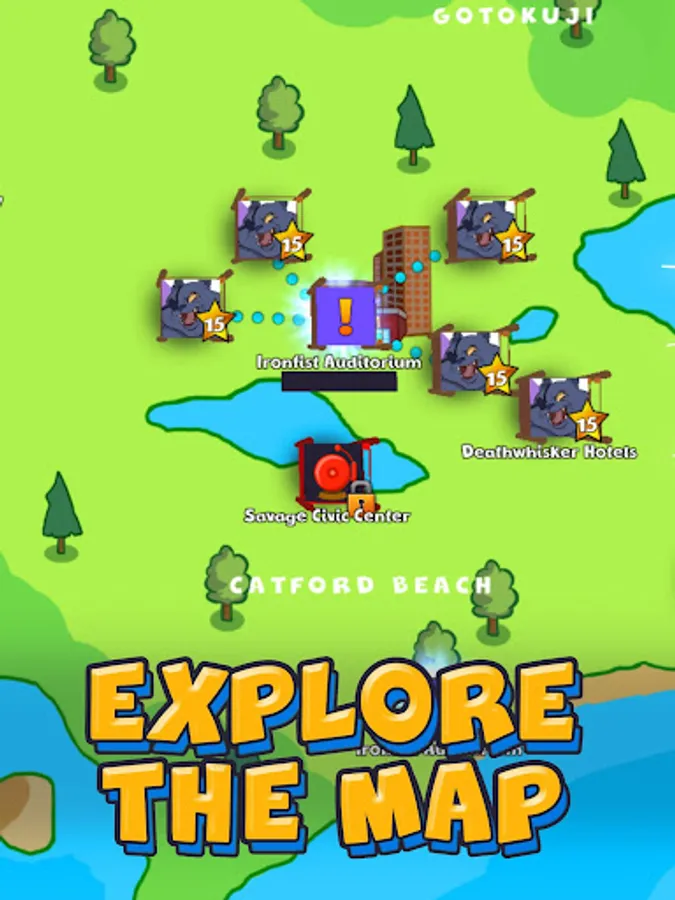Collect cat cards, evolve boxing cats and fuse cards. Go through the map in single player mode by choosing card battle venues. Evolve mighty cards. Discover new and unique battle cards. Fuse rare cards that can't be bought in the booster pack shop and that can't be collected anywhere on the map.