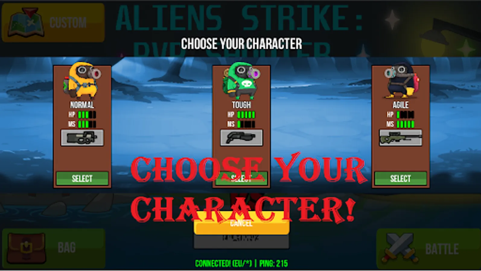 Aliens Strike : PVP Shooter - multiplayer 2D shooter. Play with friends or go to the lobby and win!