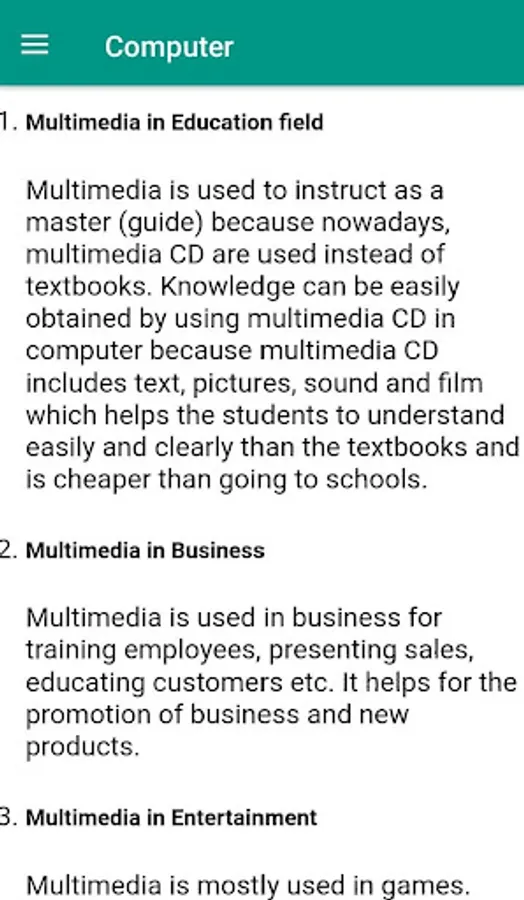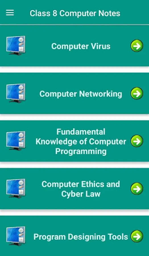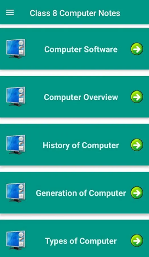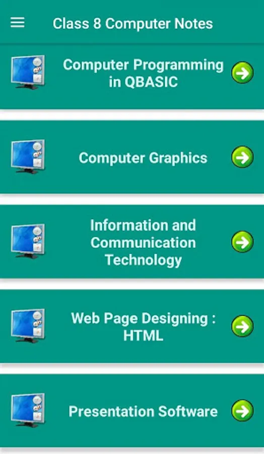 This application contains a complete Note of various chapters and collection of solution of the questions of class 8 Computer Subject.