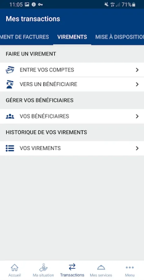 - Consult the situation of your account and the history of your transactions: Cards, loans, securities, bancassurance,