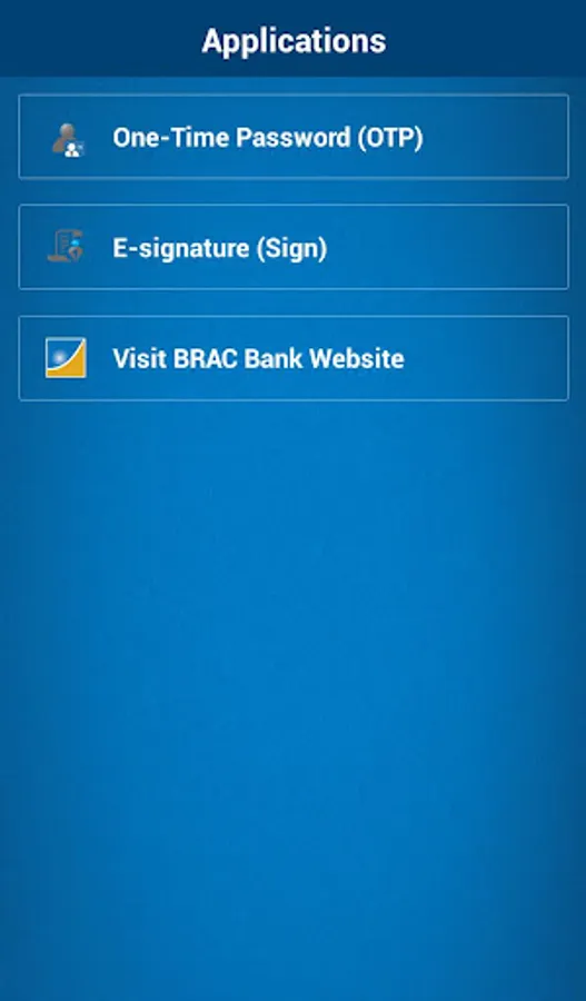 BRAC Bank Software Token is a mobile application which generates One-Time Password (OTP) and E-Signature (Sign) for authenticating financial transactions in the BBL Internet Banking.