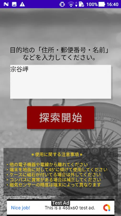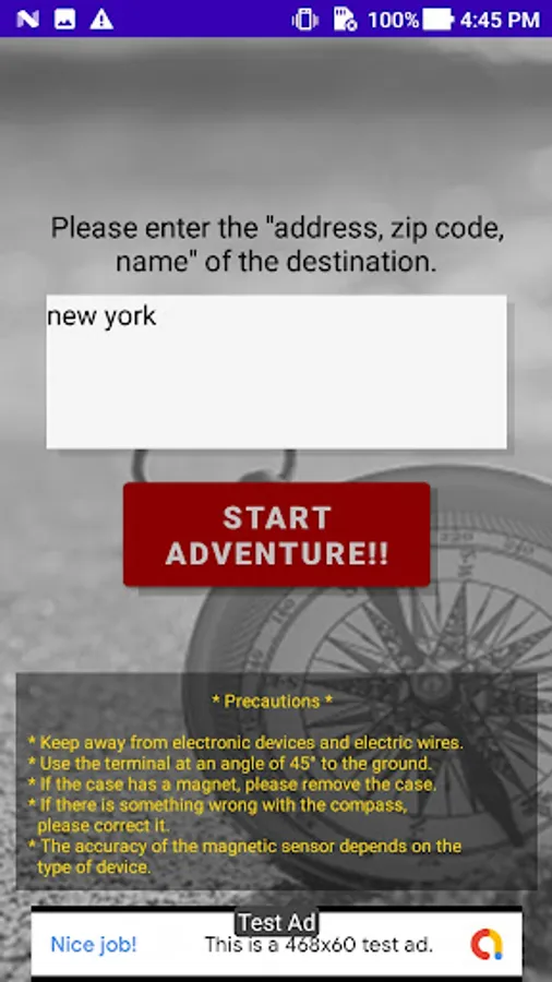 By entering the "address, zip code, name" of the destination, a compass pointing in the direction of the destination will be displayed.