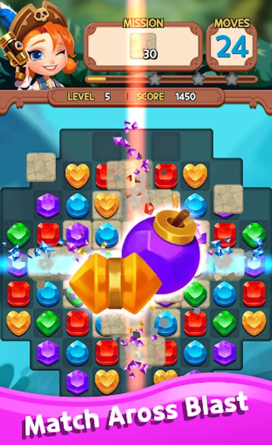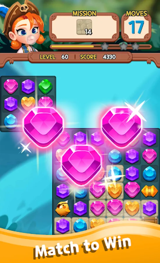 - Match 3 or more beautiful jewels in horizontal and vertical colors.