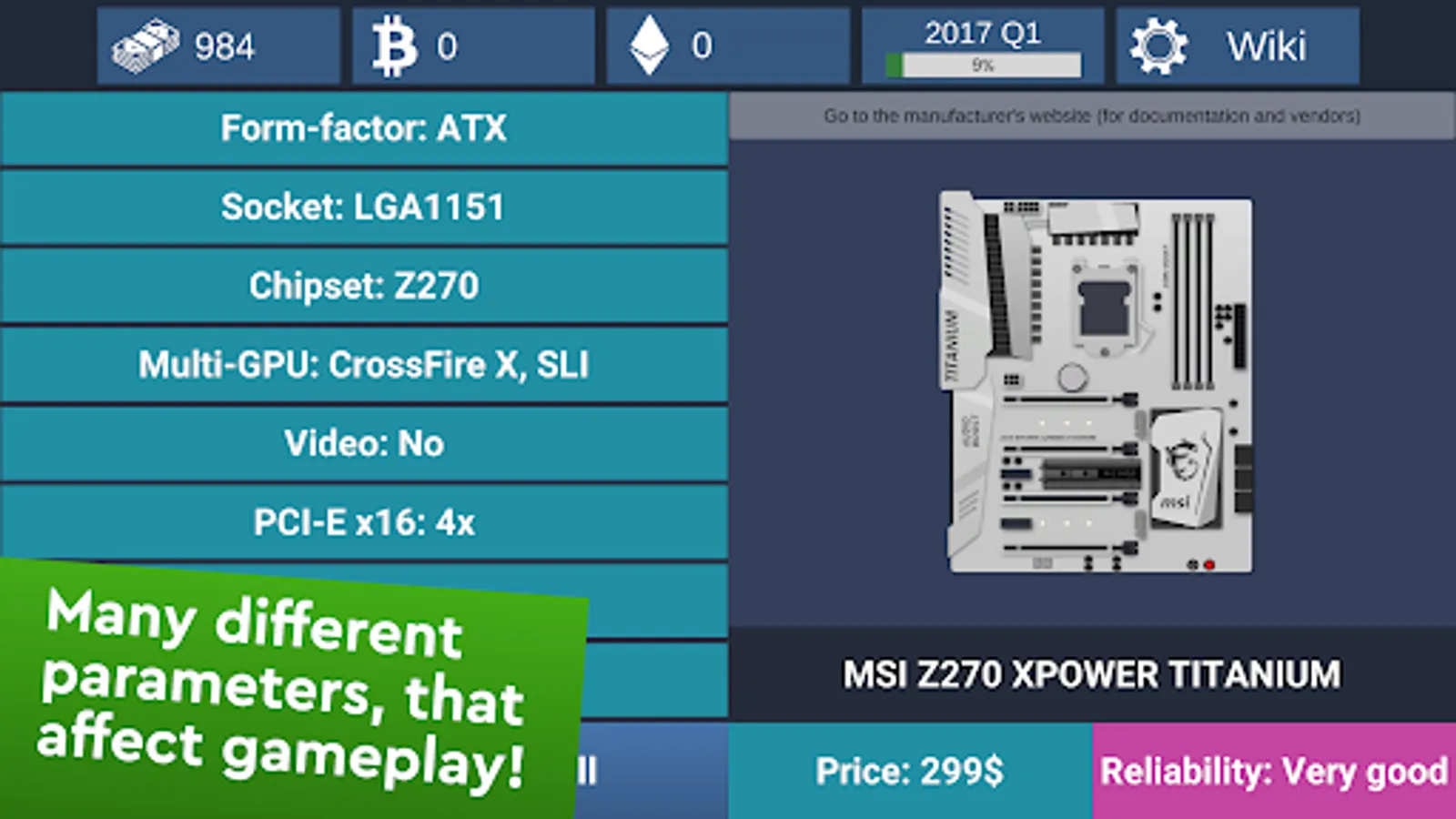 The game has a well-developed PC assembly mechanics - many different parameters are used here - the dimensions of components, their temperature, their reliability, compatibility with other components and other things.