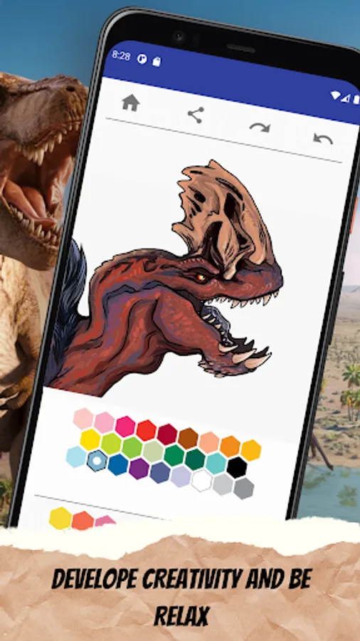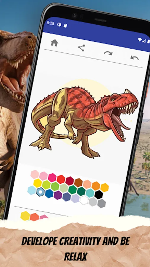 This is a best app for stimulating the creativity both for adults and for teenagers. If you love dinos and like to color or draw, this game is great. try all ideas of dinosaur coloring pages, and you also can play simple dinosaur coloring pages, Jurassic color game or jurassic dinosaur coloring pages.