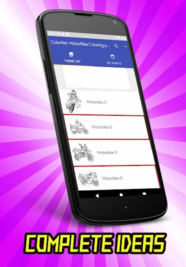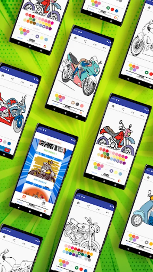This app is MotorBike Color book for adult, it contains many ideas of motorcycles theme coloring. it has many pic of Sport and touring Motorcycle coloring. Not only it also has Scooter images, scrambler Harley Davidso* coloring and Copper styles. Let’s try , etc.