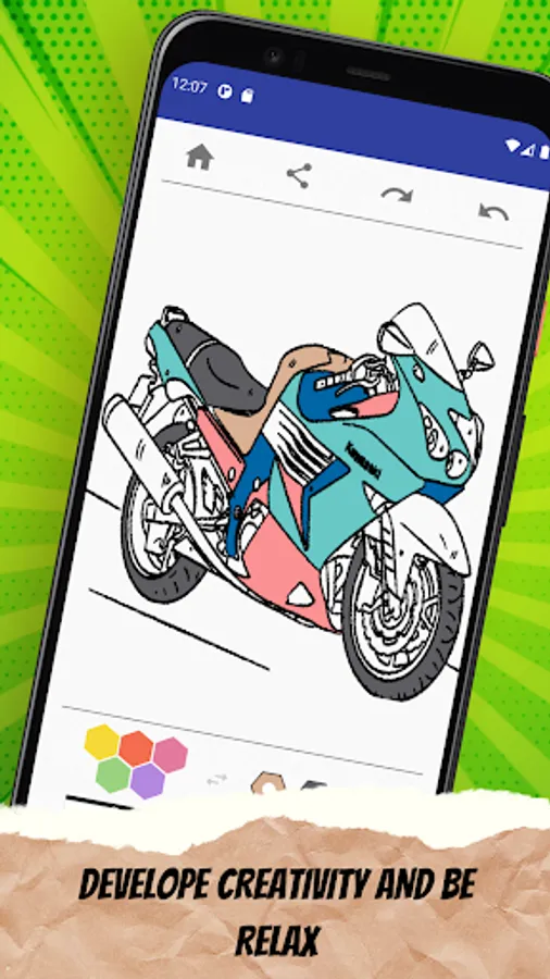 Every bike racer fan will love to color motorcycle with their creativity. Some want to see bikes in crayons, oil paint while others in glitter. So this app is the solution to your needs. We provide all types of motorcycles that ready to recolor and repaint.