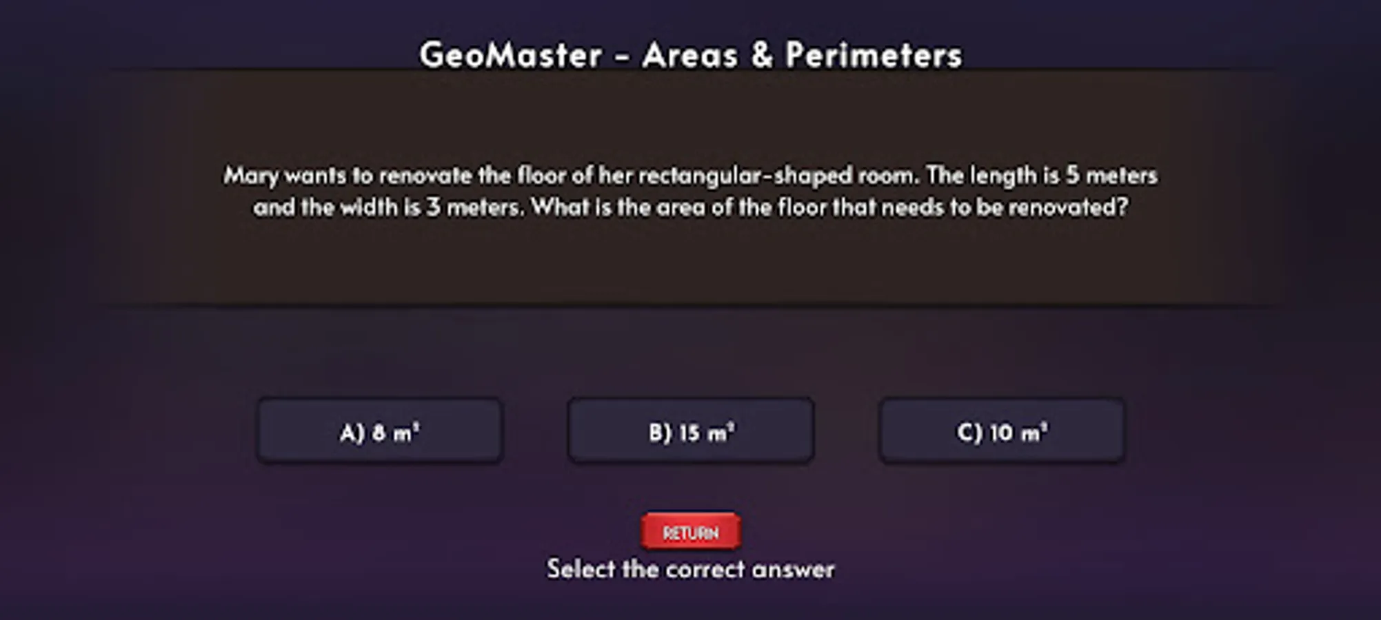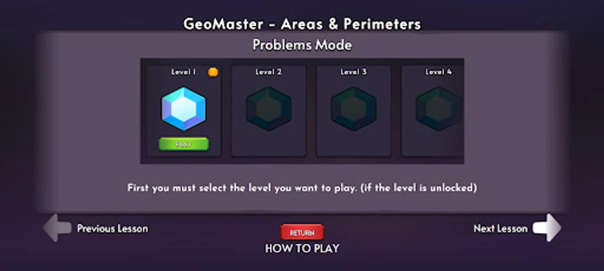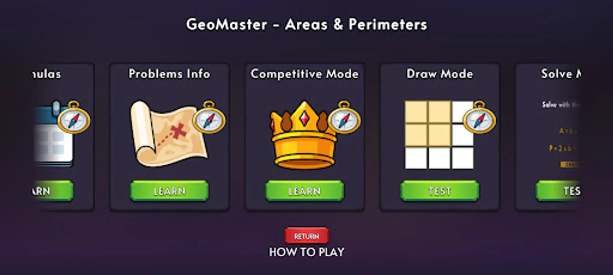 The core gameplay of GeoMaster - Areas & Perimeters consists of two modes: the learning mode and the puzzle mode. In the learning mode, players are presented with examples and explanations of the concepts. In the puzzle mode, they must use their understanding of the concepts to solve puzzles. The game also includes a painting tool that can be used to visualize the concepts and help players complete puzzles.