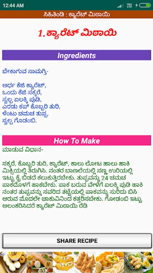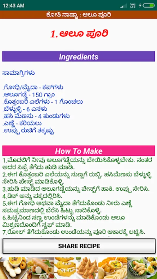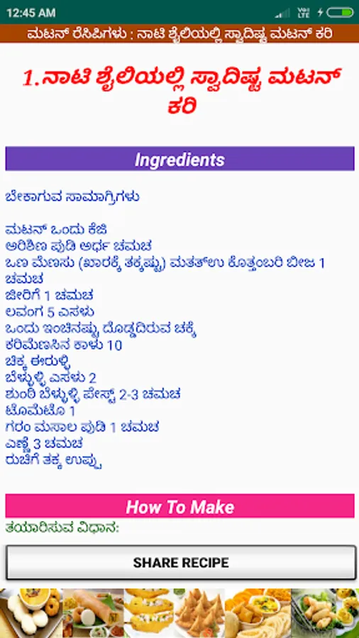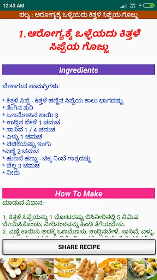 App contains more than 4000+ details of tasty & delicious recipes in KANNADA.