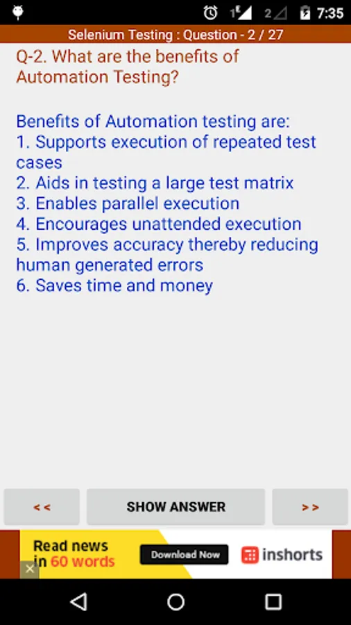 “Software Testing Interview FAQs” app contains frequently asked questions & their answers of Software Testing.