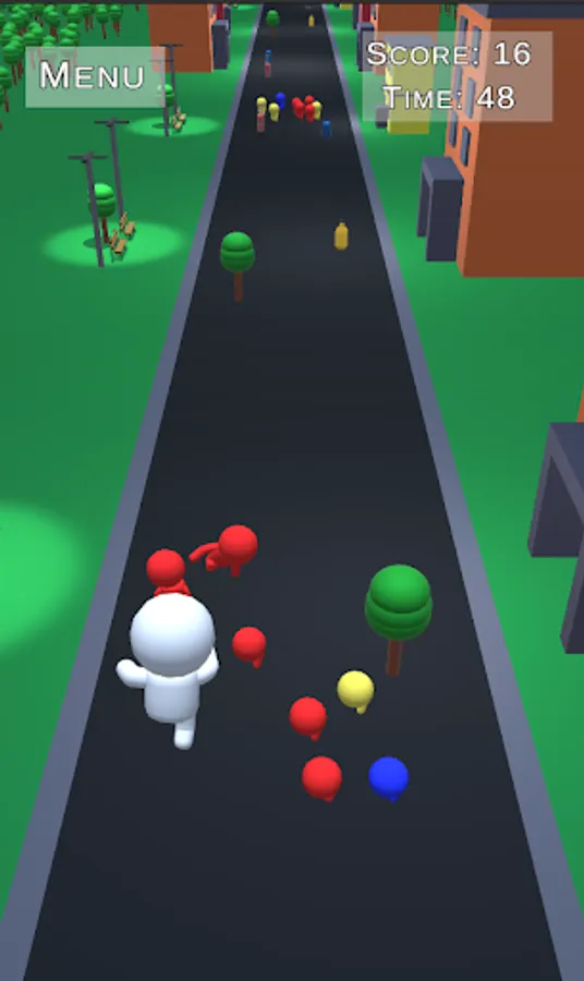 Every bottle gives 2 point, every human gives 3 point. Hitting a tree reduces it by 2 points.