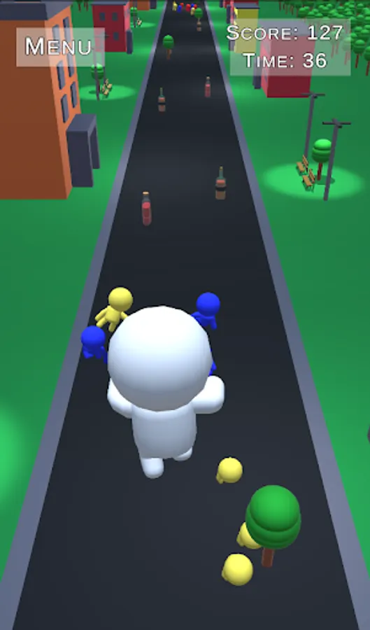 Collect bottles to grow, be careful to trees! Trees hurts.
