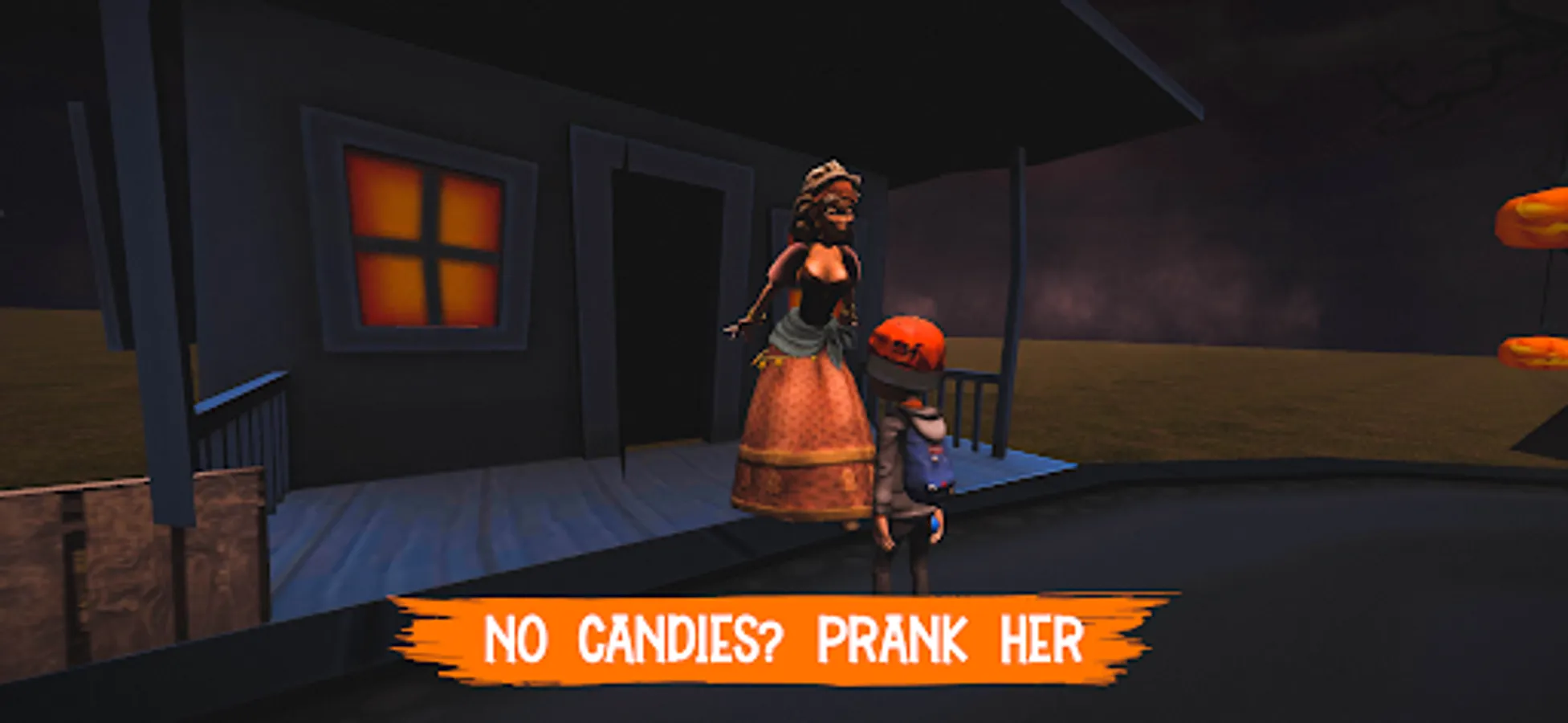 Wander through a Halloween-themed town, knocking on doors and asking for trick or treat. But beware, the town is filled with scary people and bad neighbours who will try to kidnap you. Escape their clutches and steal the candy from their doorstep!