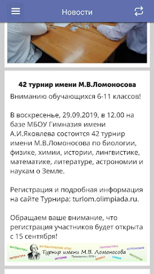 School students can receive relevant information about school events and various olympiads.