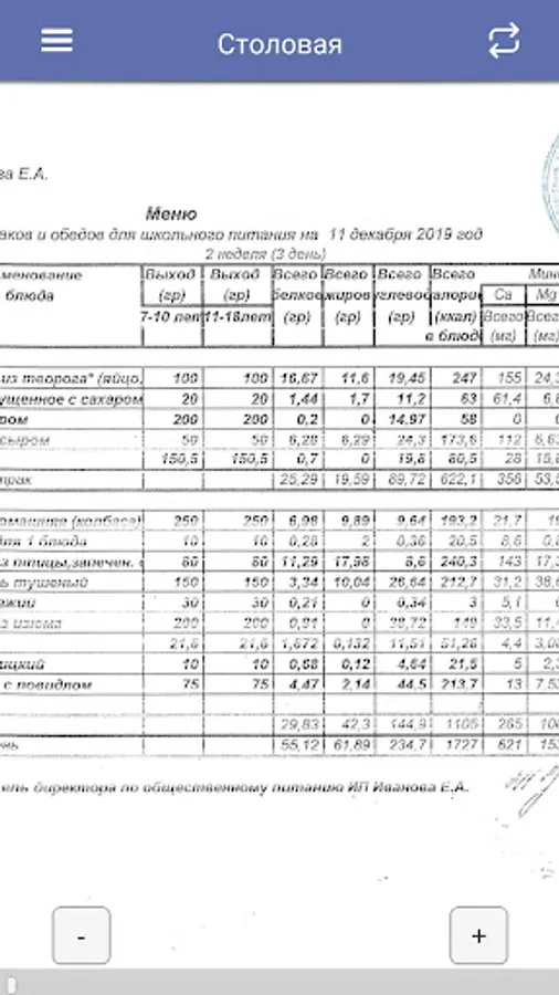 5) Dining room - menu from the dining room