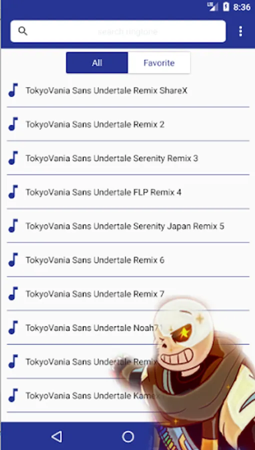 More Than 40 Tokyovania Sans Music and Remix Here .... Free ringtone for your mobile phones, high quality, fast, and easy to use. Now You can Tokyovania Sans Music and You can set it as for ringtone and more... If You Love Ink Sans Inktale Undertale Music, You should Download this app... Music by ShareX and Other, This app by fans for fans ... Thank You !