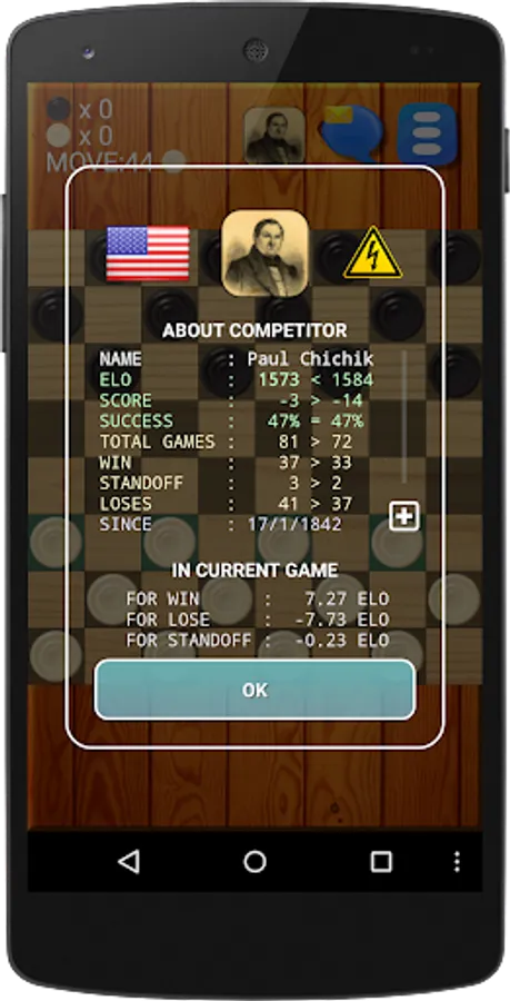 + When you play online, you can select the flag of your country and see the name, profile photo and statistics opponent, chat (with emoji) during the game.