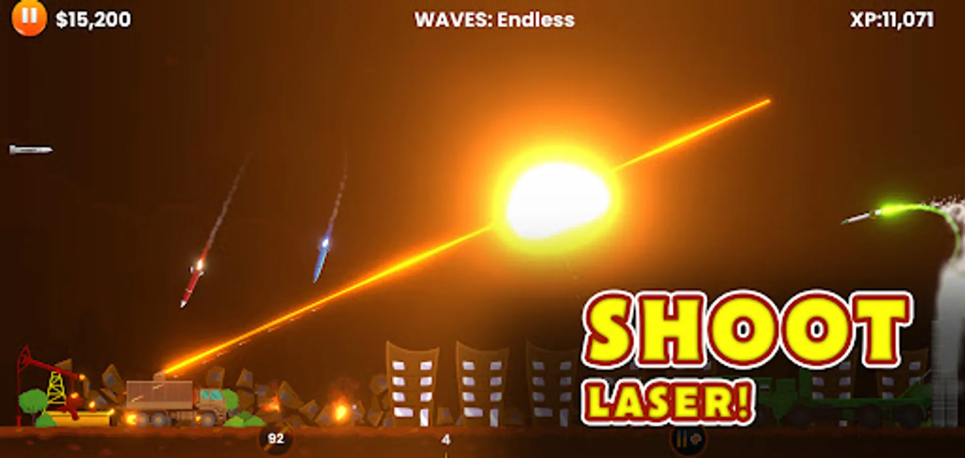 The enemy has launched dozens of missiles and war jets aimed at your city. Take command of the latest anti-aircraft, anti-ICBM, LASER, electromagnetic pulse (EMP) and anti-missile batteries and show the enemy your defensive prowess!.