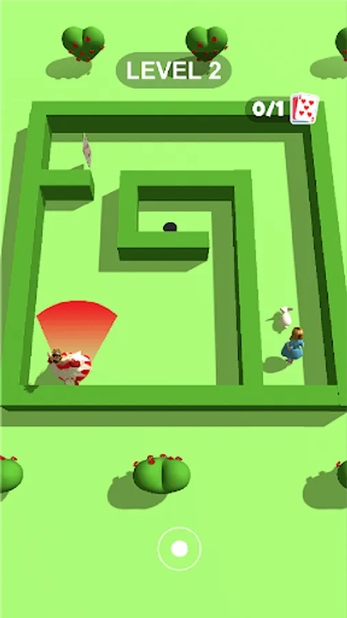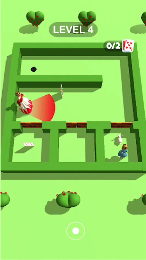 Follow the rabbit to the hole to finish the level! Don't let the queen see you and collect cards to unlock awesome bonus levels!