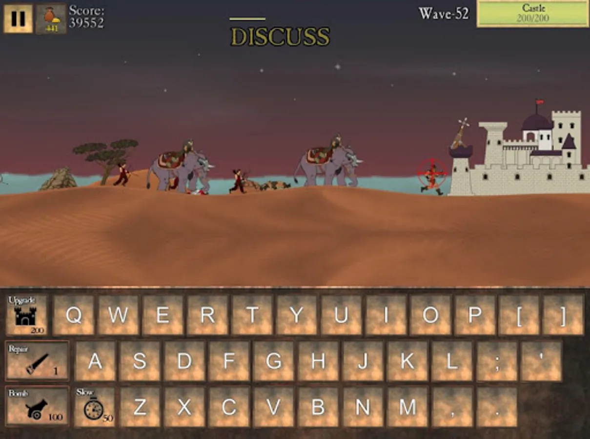Type Defense brings a brand new approach to all typing games. You have to stop desert bandits by firing with your ballista. Everyone knows the best way of using a ballista is typing! And it supports multiple languages!