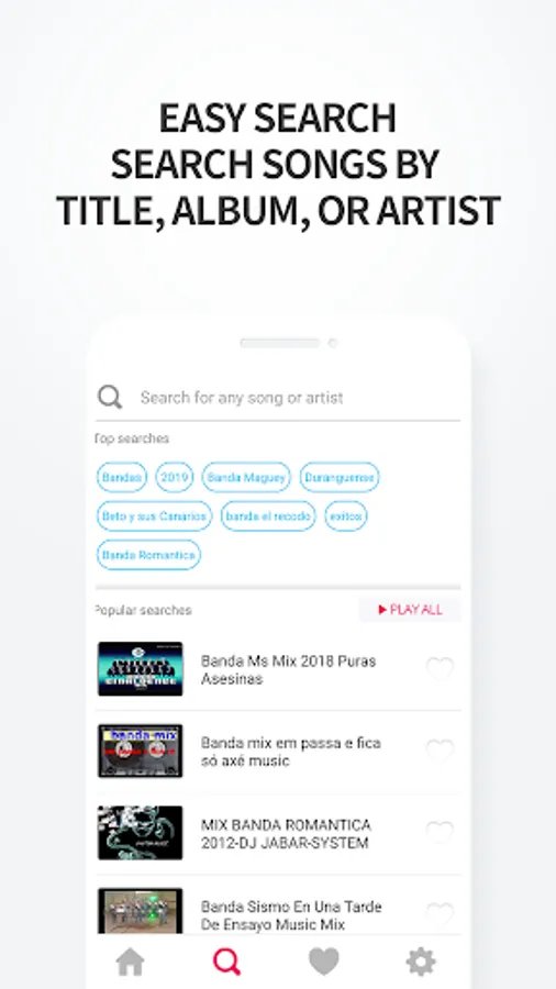 In this application, you can listen to the best Banda music, traditional bandas, Technobanda, Duranguense, and Tamborazo, sung and performed by the most famous artists like: Banda el Recodo, Banda Machos, Banda Los Recoditos, La Adictiva, Valentin Elizalde, Los Tucanes de Tijuana, among many more. Plus, you can create your own playlist of your favorite Banda songs. Download Music Banda 2019 right now and enjoy the best Banda music of all time!