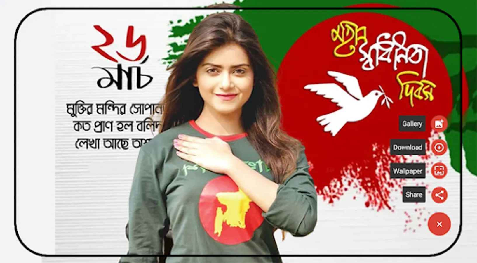 অ্যাপ্লিকেশনটি সাজানো হয়েছে ২৬শে মার্চ এর দারুণ সব ফ্রেমের কালেকশন দিয়ে ।