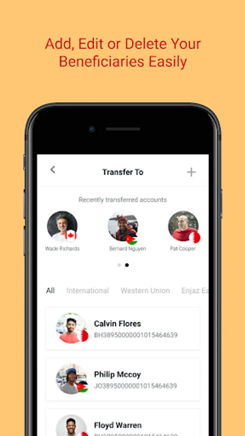 Enjaz App enables Enjaz customers to transfer money internationally easily and directly through a wide network of international banks and money transfer operators using our unique service "Enjaz Easy" or through "Western Union" & “Transfast”.