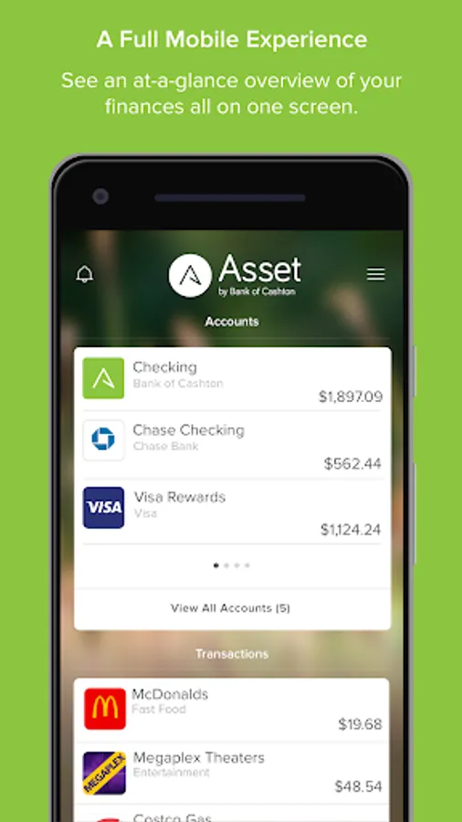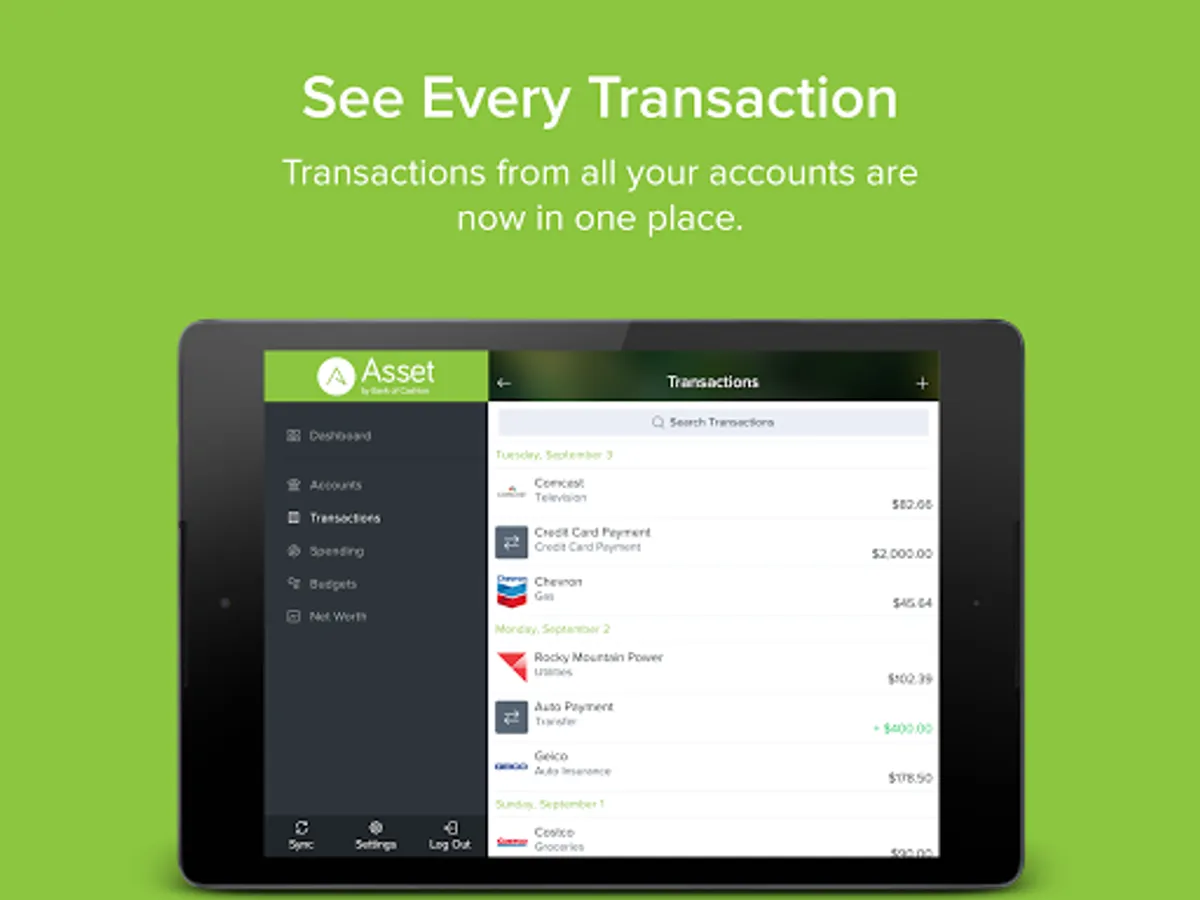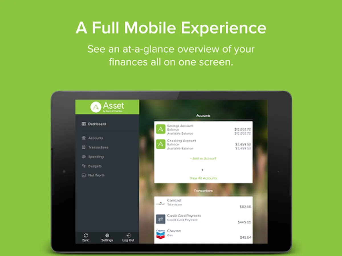 Asset’s design makes managing your money easier and more convenient - but also a lot more enjoyable and exciting. Not only will you be able to see all your financial data in one place, you will be able to visualize that data in meaningful and engaging ways on your phone or tablet.