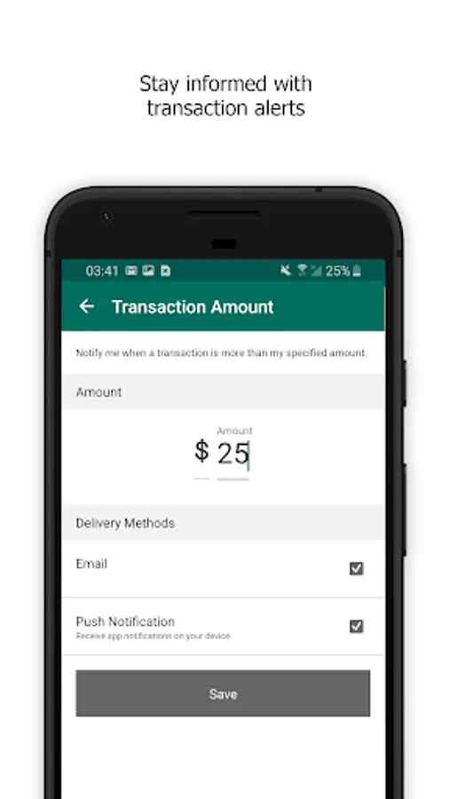 • Be alerted with real-time email notifications and/or text message alerts to immediately detect any unauthorized card usage