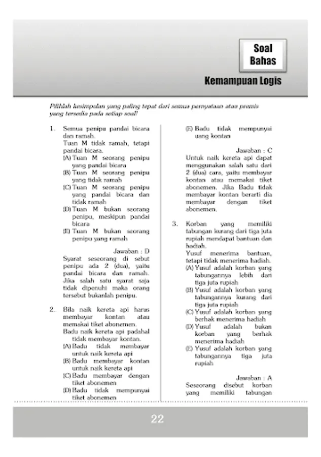 Penalaran Analogi, Logis, Analitik, Aretmetika, Deret Angka dan Geometri.