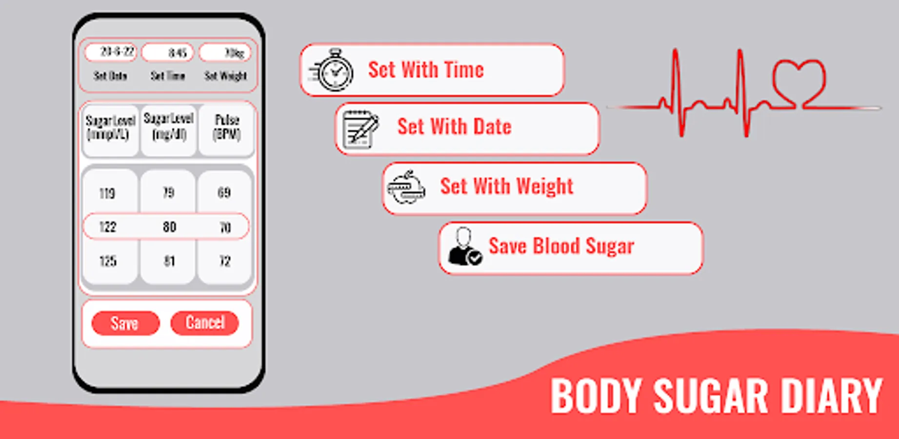 This app is designed to give you a good diary of your blood sugar and pulse and does not measure your blood sugar and pulse. All results are randomly generated!