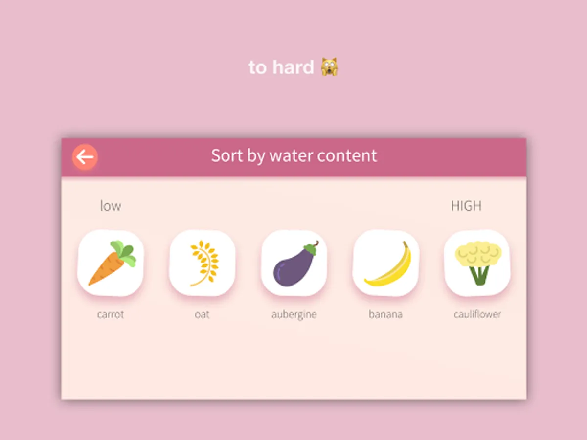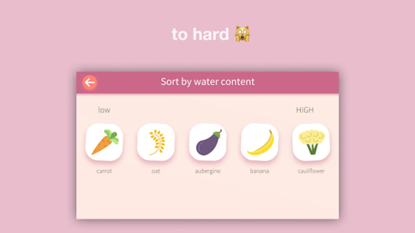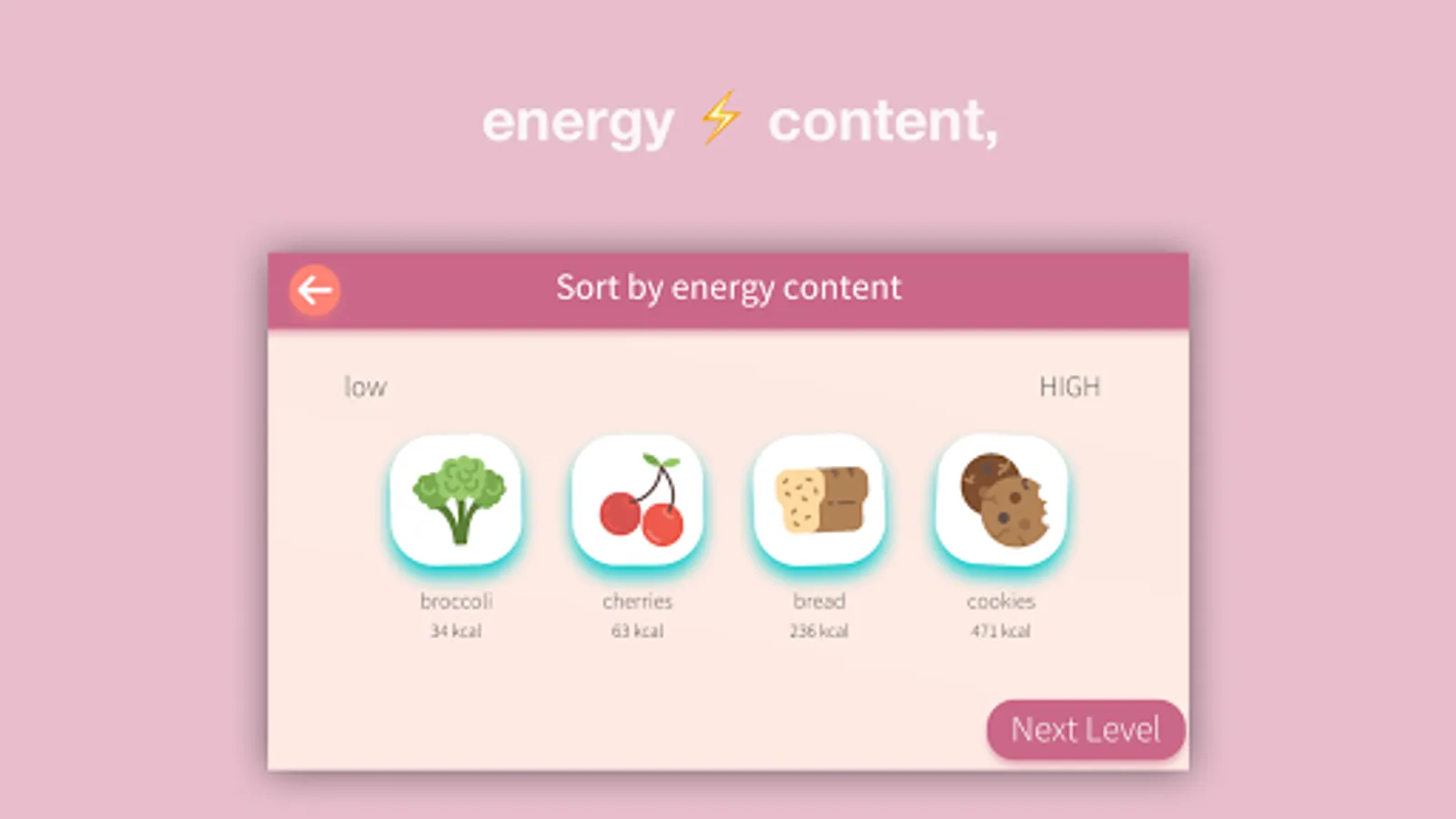 Test your knowledge by sorting food by fat, protein, energy and more. No Ads! No High scores! Only food and a relaxing music...