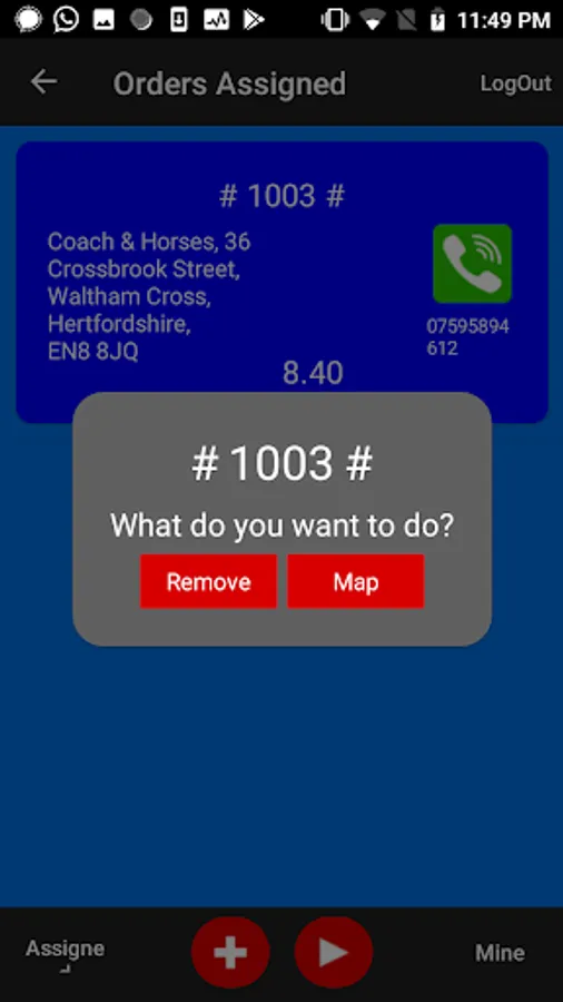 This app uses a bar scan method which allows drivers to log in and out. It allows drivers to assign orders and keeps a history of which orders were taken by which driver. It also allows time keeping of staff.