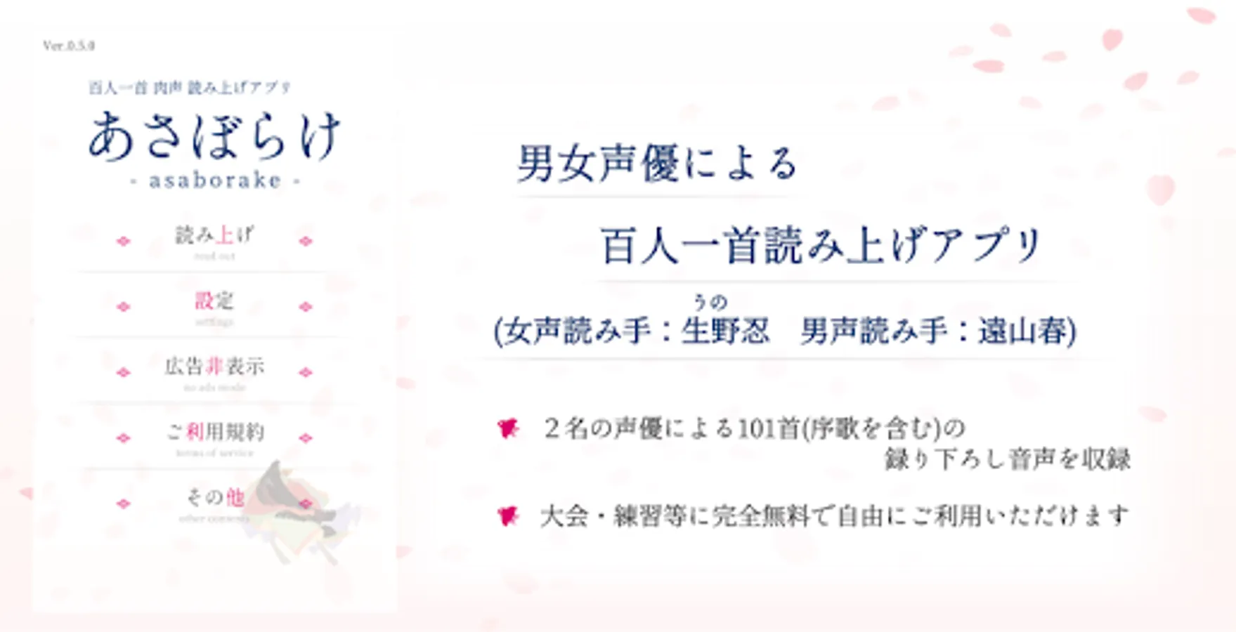 It is a Hyakunin Isshu reading app by two male and female voice actors.