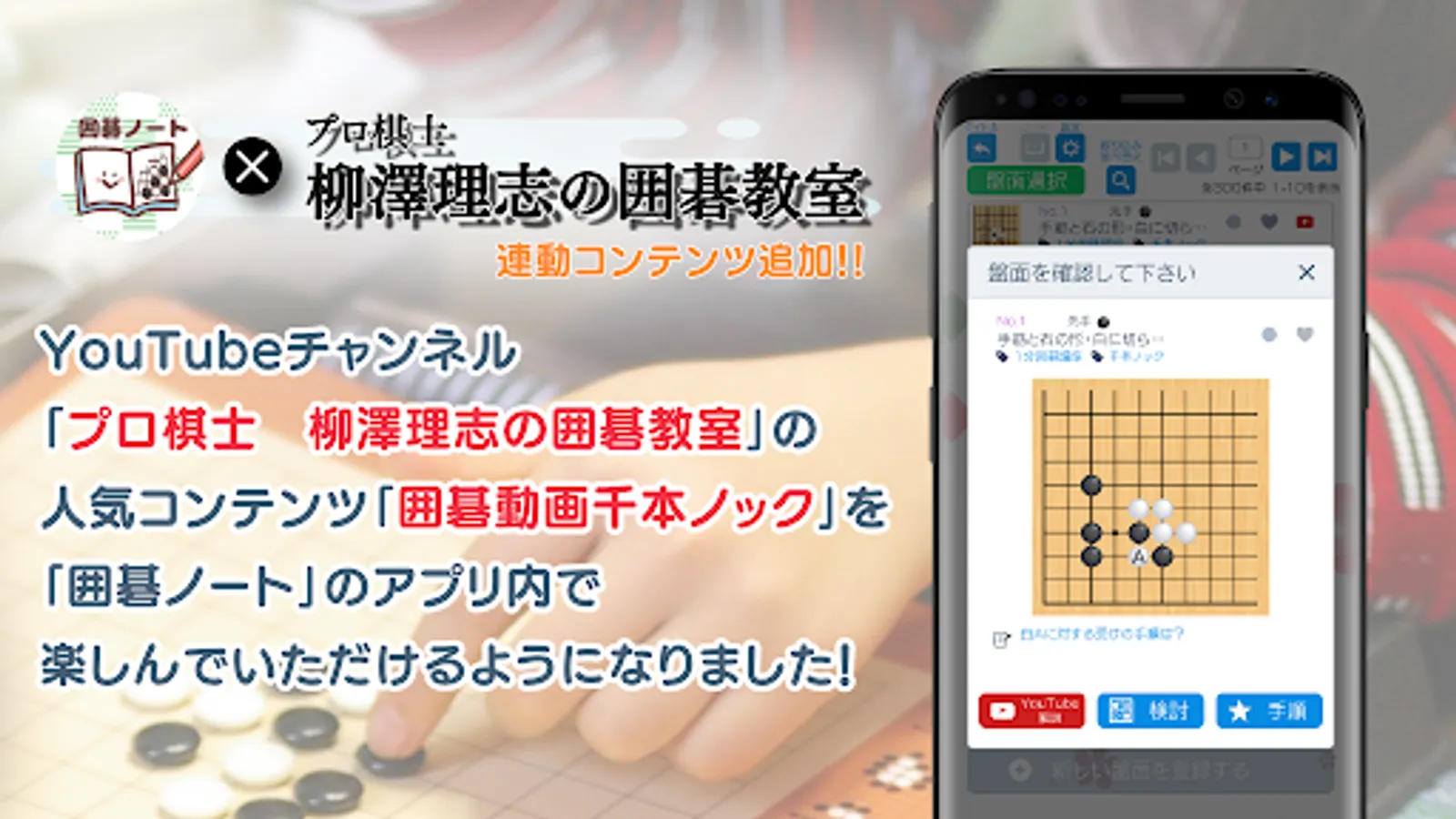 Thanks to Mr. Satoshi Yanagisawa, a professional shogi player belonging to Nihon Ki-in, you can enjoy the problem of "Go Video Senbon Knock" published on Mr. Yanagisawa's YouTube channel "Professional Go Player Satoshi Yanagisawa's Go Class" in the app. You can now have it.