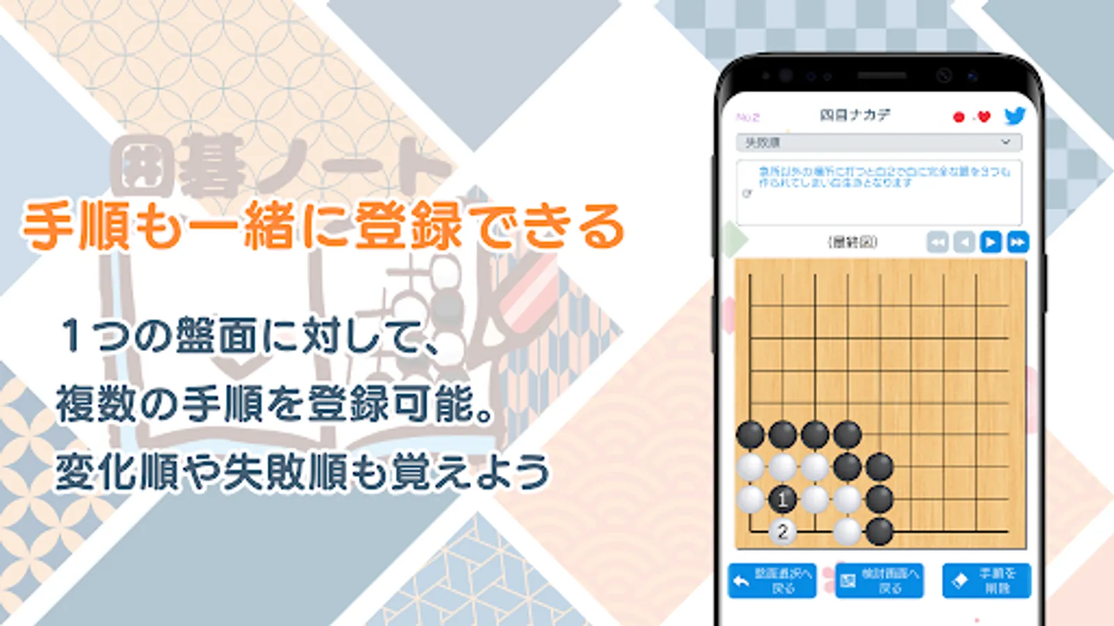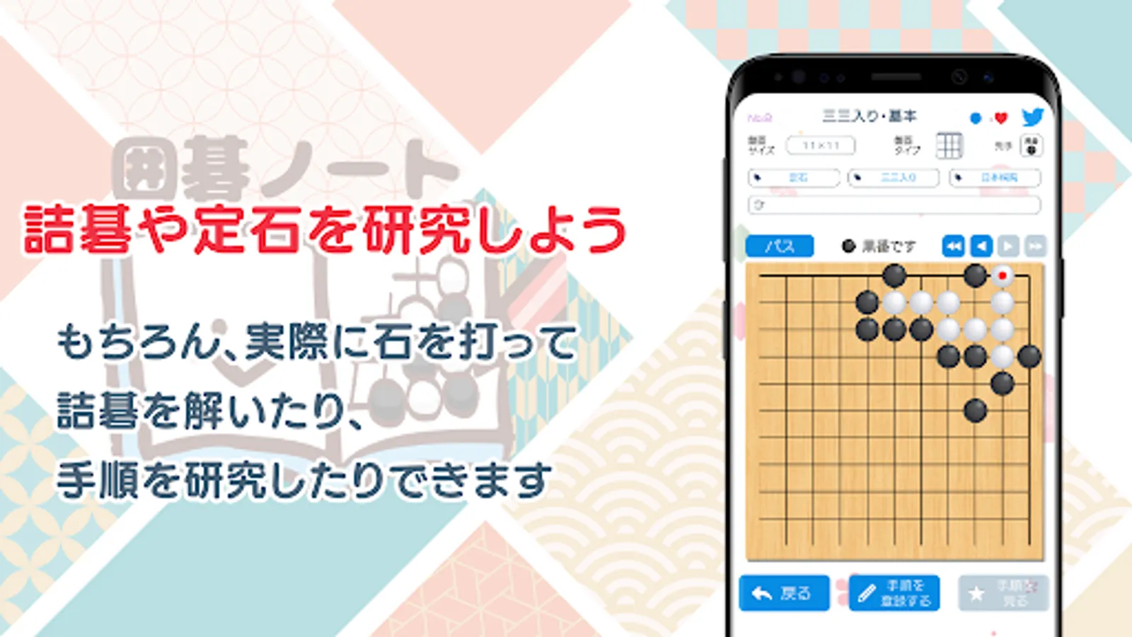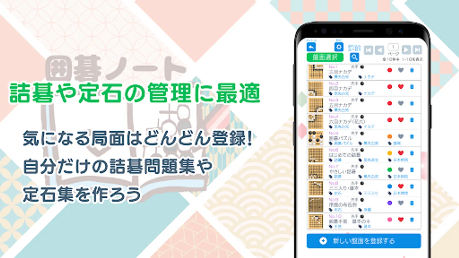 "Go Note" is a free application that allows you to freely register Go problems and joseki, and manage and record board and game records.